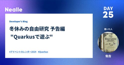 この記事はニーリーアドベントカレンダー2024の25日目 その2の記事です。 こんにちは、ニーリーの佐古です。 最終日ということで、短く冬休みの自由研究の予告をして終わりたいと思います。 テーマ Quarkusで簡単なWebアプリケーションを作る Quarkusとは 高…